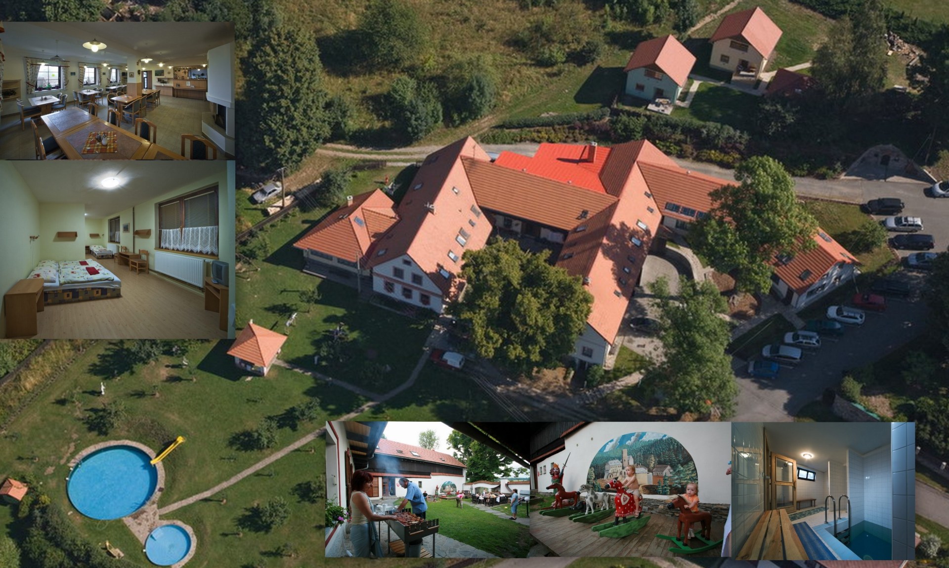 Nabízíme ubytování pro rodiny s dětmi-pokoje s vlastním sociálním zařízením, krytý bazén se slanou vodou, venkovní bazény, venkovní hřiště. Celková kapacita je 60 osob v 18-ti dvou, tří a čtyřlůžkových pokojích s možností přistýlek a ve 2 nově otevřených nadstandardních chatách do 40-ti metrů od penzionu.
